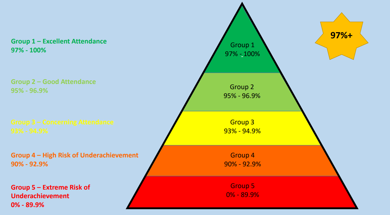 - If attendance falls below the expected level, a letter will be sent to the parent. This is designed to alert the parent of dip in attendance.